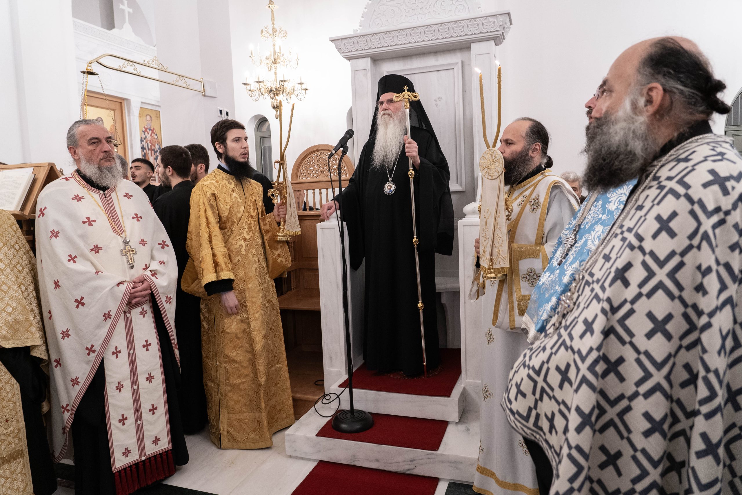 Το πρωί της επομένης, Κυριακή μετά την εορτή των Φώτων, 11 Ιανουαρίου, ημέρα κατά την οποία η Εκκλησία μας εορτάζει τη μεγάλη μορφή του Μοναχισμού, τον Όσιο Θεοδόσιο τον Κοινοβιάρχη, ο Σεβασμιώτατος Μητροπολίτης μας κ. Νικόλαος χοροστάτησε στον Όρθρο και εν συνεχεία τέλεσε τη Θεία Λειτουργία στον νέο Ιερό Ναό, ευχόμενος τα κάλλιστα για την πρόοδο και ανάπτυξη του νέου αυτού μοναστηριακού προσκυνηματικού Ναού. «Δόξα τῷ Θεῷ πάντων ἕνεκεν!»