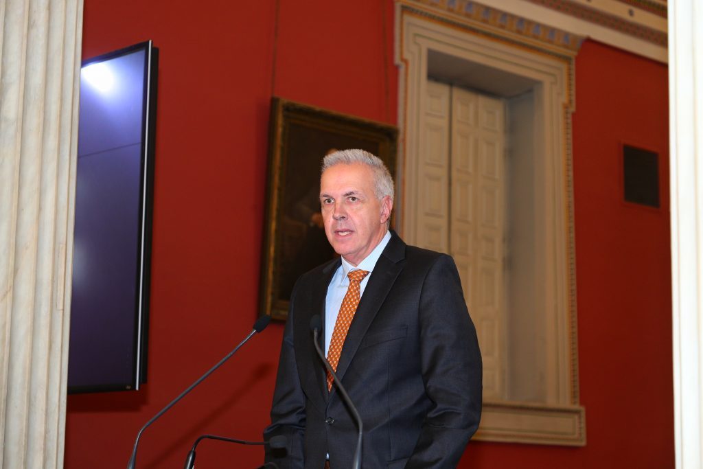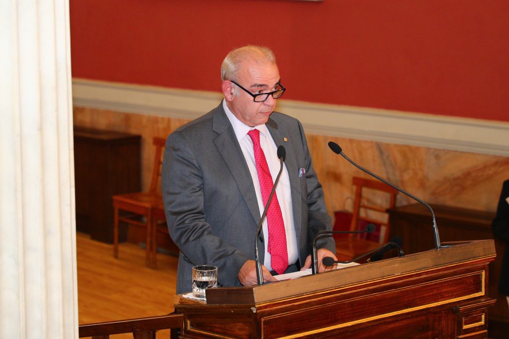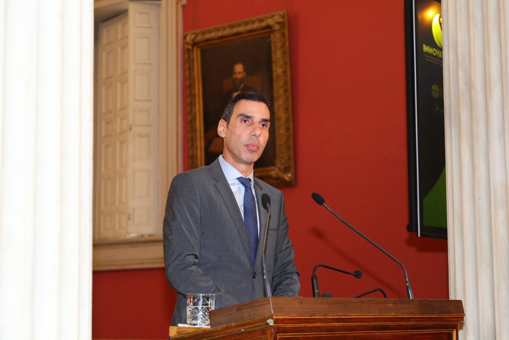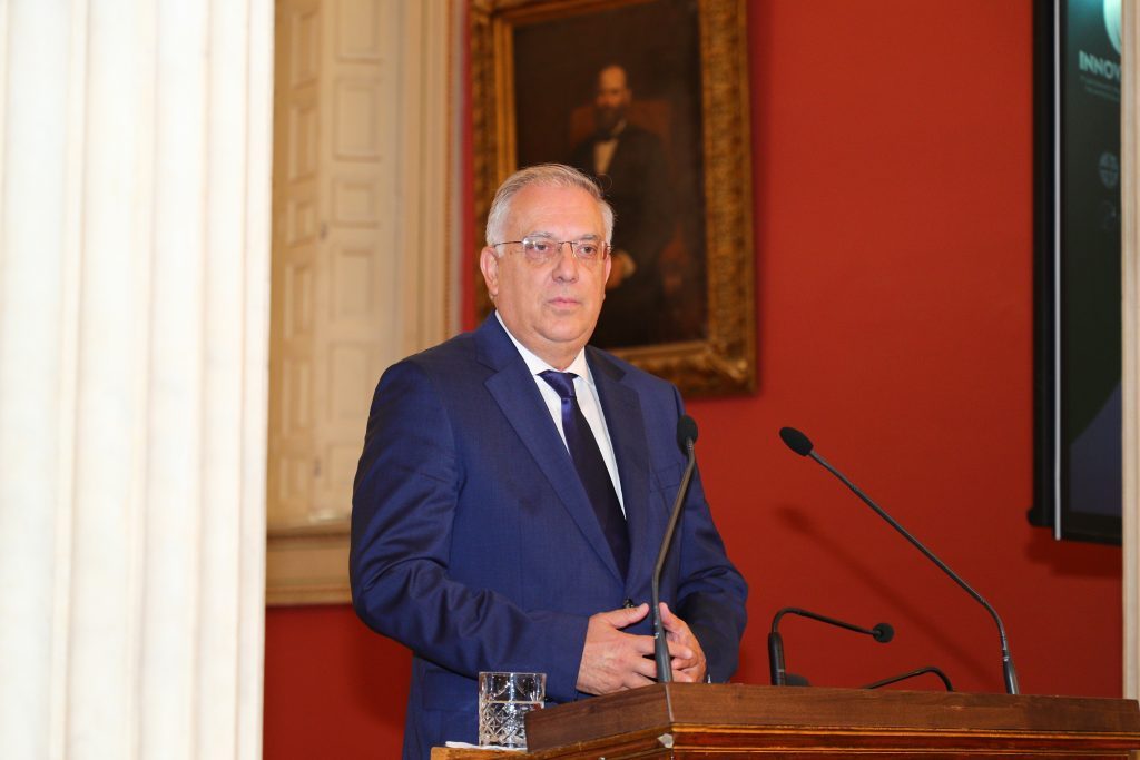 Ο Πρύτανης του Πανεπιστημίου Αθηνών, Καθηγητής Γεράσιμος Σιάσος στον χαιρετισμό του, αφού καλωσόρισε τους παρευρισκόμενους στην Μεγάλη Αίθουσα του Εθνικού και Καποδιστριακού Πανεπιστημίου Αθηνών, για την Τελετή Βράβευσης του 1ου Διαγωνισμού Πράσινης και Γαλάζιας Καινοτομίας “Innovate East”, τόνισε τον υψηλό συμβολισμό της πρωτοβουλίας αυτής που συνδέει την ακαδημαϊκή κοινότητα και τον παραγωγικό ιστό της χώρας σε έναν κοινό σκοπό: την ανάπτυξη και την καινοτομία με επίκεντρο τον άνθρωπο και το περιβάλλον. Ο κος Σιάσος σημείωσε ότι η γνώση πρέπει να φτάνει στον πολίτη και να μετατρέπεται σε προϊόντα, υπηρεσίες, και πολιτικές που αλλάζουν τη ζωή μας. Εξήρε το διαγωνισμό ως ένα φωτεινό παράδειγμα συνεργασίας δημοσίων φορέων, επιχειρήσεων, κορυφαίων πανεπιστημίων της χώρας και νέων επιστημόνων από την Ελλάδα και το εξωτερικό.