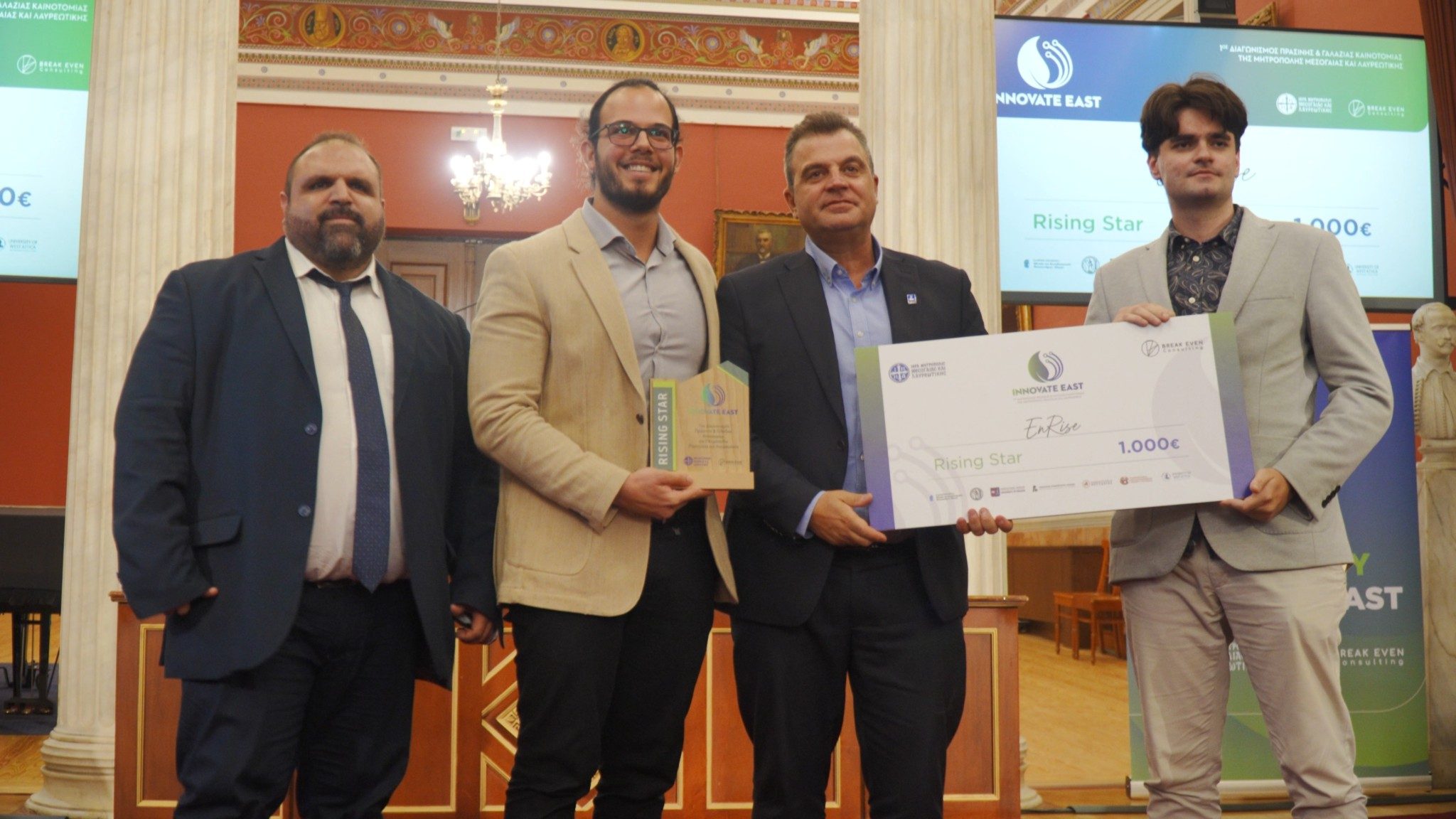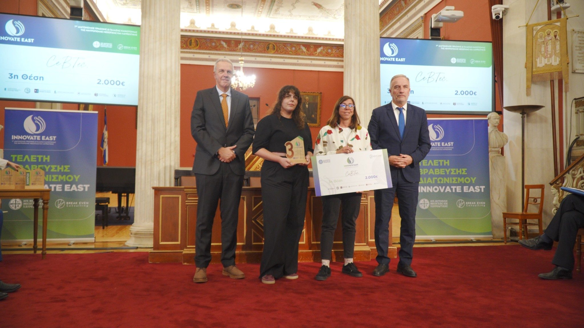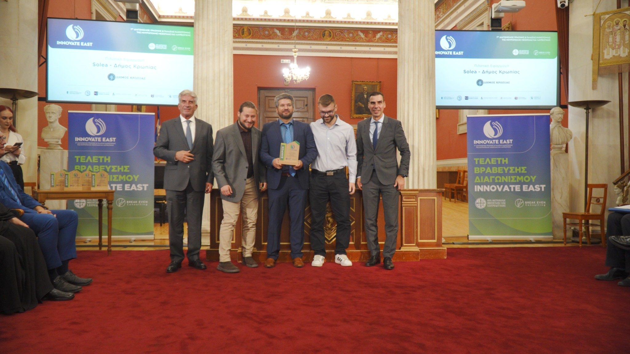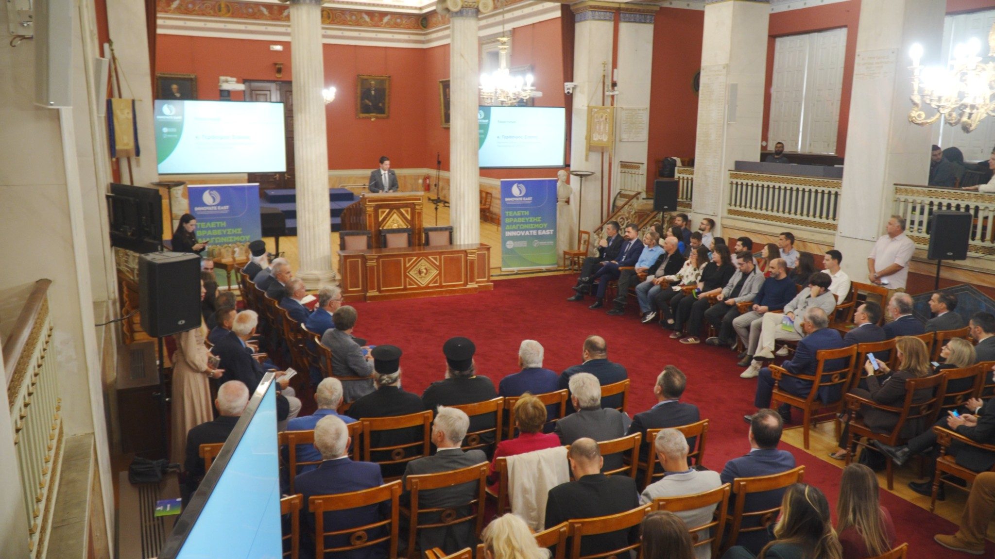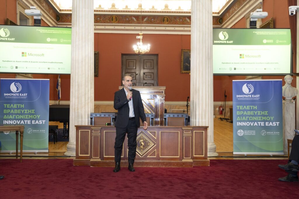 Την Τρίτη 7 Οκτωβρίου 2025 , στην Αίθουσα Τελετών του Εθνικού Καποδιστριακού Πανεπιστημίου Αθηνών ολοκληρώθηκε ένα «ταξίδι» γνώσης και πρακτικής εφαρμογής, με την Τελετή Βράβευσης των ομάδων, που διακρίθηκαν στον Διαγωνισμό “Innovate East”.