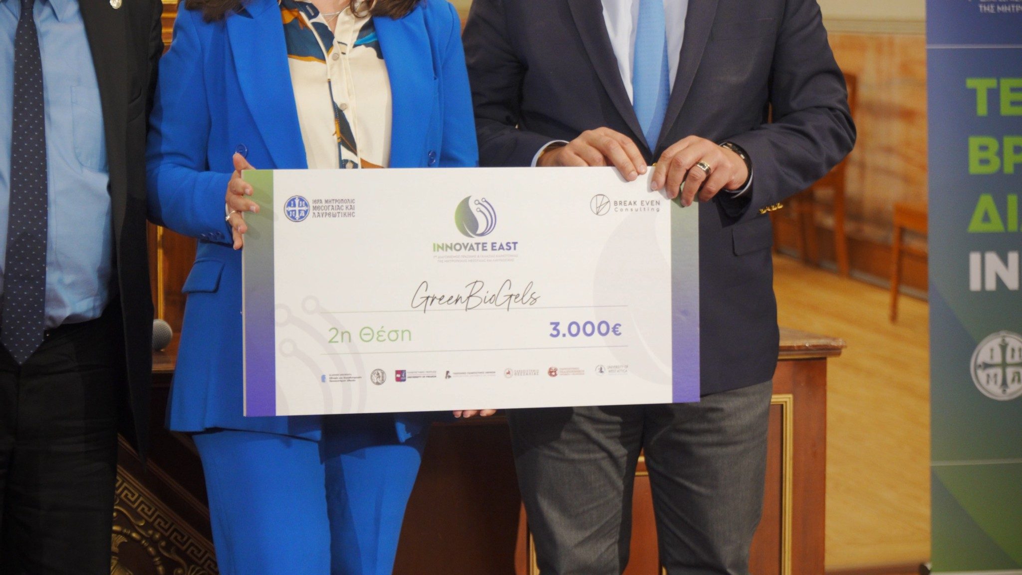 Στην εκδήλωση απηύθυναν χαιρετισμούς ο Υπουργός Ανάπτυξης κ. Τάκης Θεοδωρικάκος, ο Υφυπουργός Παιδείας, Θρησκευμάτων και Αθλητισμού κ. Κωνσταντίνος Βλάσης, ο Υφυπουργός Υγείας κ. Μάριος Θεμιστοκλέους, ο Υφυπουργός Ανάπτυξης κ. Σταύρος Καλαφάτης, και οι Πρυτάνεις του Εθνικού Μετσοβίου Πολυτεχνείου καθηγητής Ιωάννης Χατζηγεωργίου, του Πανεπιστημίου Πειραιώς καθηγητής Μιχαήλ Σφακιανάκης, του Πανεπιστημίου Πελοποννήσου καθηγητής Αθανάσιος Κατσής και του Πανεπιστημίου Δυτικής Αττικής καθηγητής Παναγιώτης Καλδής, καθώς και η Αντιπρύτανης του Πανεπιστημίου Θεσσαλίας καθηγήτρια Χρυσή Λασπίδου και ο Αντιπρύτανης του Γεωπονικού Πανεπιστημίου Αθηνών καθηγητής Εμμανουήλ Φλεμετάκης και ο Αντιπεριφερειάρχης Ανατολικής Αττικής κ. Δημήτριος Δαμάσκος. Παρέμβαση πραγματοποίησε ο Πρόεδρος της Break-Even Consulting κ. Μάρκος Μαργαρίτης. Μεταξύ των παρισταμένων ήταν ο πρώην Υπουργός κ. Μάκης Βορίδης, ο Αντιπρύτανης του ΕΚΠΑ καθηγητής Αριστείδης Σάμιτας, καθώς και βουλευτές και δήμαρχοι της περιοχής.