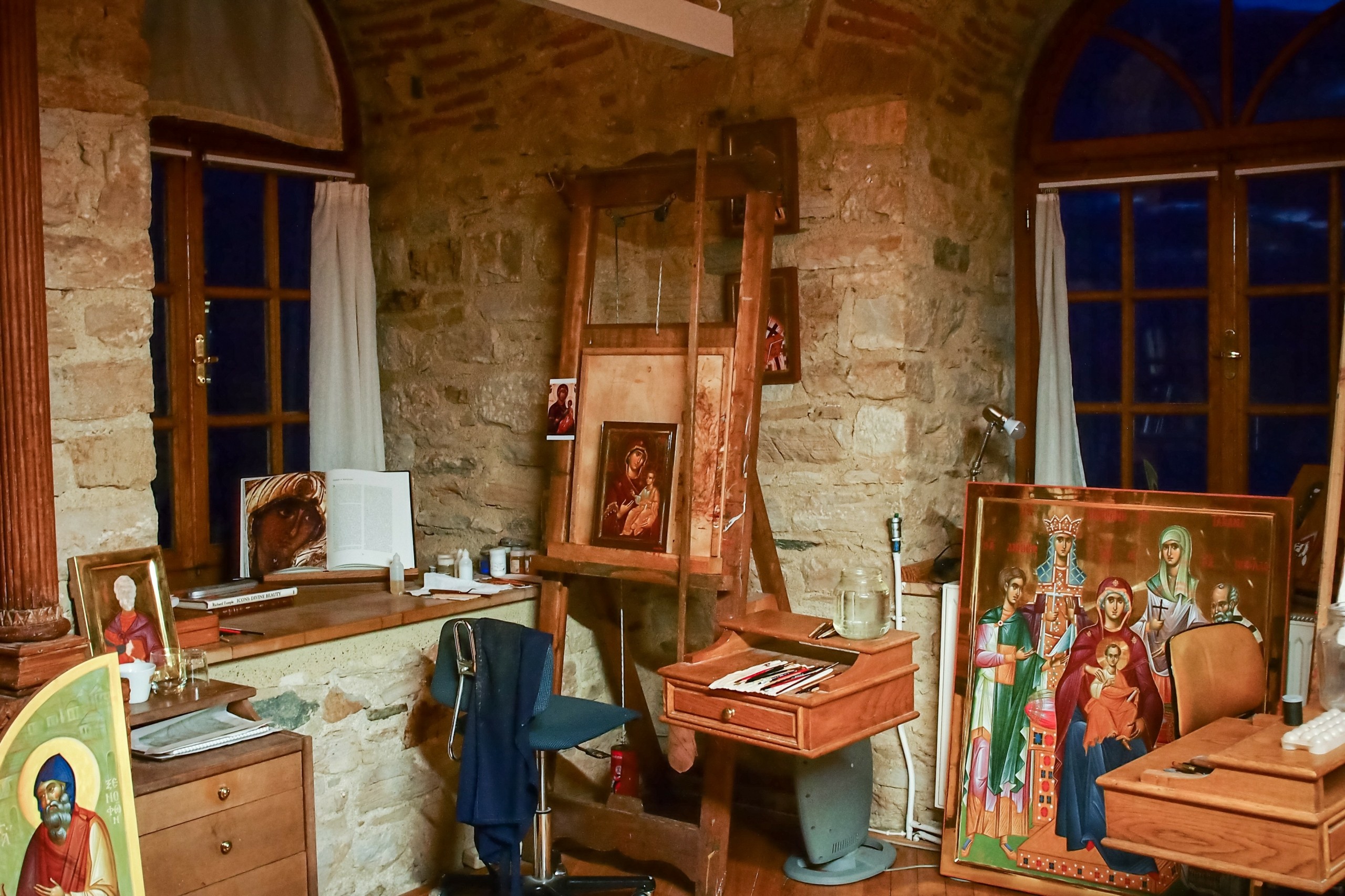 Φωτογραφίζοντας τις μονές παρατήρησα ότι το ανθρώπινο στοιχείο του θαυμασμού για τα κειμήλια δεν ίσχυε στους μοναχούς. Ο θαυμασμός και ο σεβασμός τους ήταν καθαρά για το τι αντιπροσώπευε το κάθε ένα από αυτά, παρά για το ίδιο αντικείμενο. Θυμάμαι κάποια φορά, που ο ίδιος μοναχός, ο οποίος φορούσε γάντια και προσευχόταν πριν πιάσει τα εκκλησιαστικά σκεύη, όταν έγινε μια μικρή ζημιά σε ένα πήλινο, λαογραφικό κειμήλιο, ηρέμησε τη δική μας ταραχή λέγοντάς μας: «Τι σκάτε; Αυτό πριν από εμάς ήταν εδώ και θα είναι και μετά από εμάς, ας το κολλήσουμε απλά». Μια άλλη φορά, που φωτογραφίζαμε εικόνες του 17ου και 18ου αιώνα, μπήκε στο «τύπου στούντιο» που είχαμε φτιάξει, ένα γεροντάκι, που ούτε είχαμε ξαναδεί, ούτε ξαναείδαμε ποτέ, για να πάρει την εικόνα πίσω στο κελί του -έμενε σε κελί εκτός της μονής. Την ήθελε για τον εσπερινό που τελούσε μόνος του στο κελί του. Χάρηκε όταν είδε ότι είχαμε καθαρίσει το προστατευτικό τζαμάκι που είχε μπροστά. «Πάτερ, η εικόνα που έχετε στο κελί σας είναι ιστορική» του λέμε. «Δεν ξέρω παιδιά μου, εκεί ήτανε και εκεί θα μείνει» μας απάντησε.